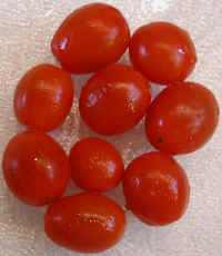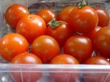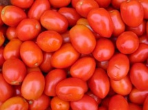 Grape tomatoes are a hybrid of cherry and Italian tomatoes. They are lower in water content and have thicker walls than the cherry varieties. They are also excellent for salads, sautéing, and eating plain.