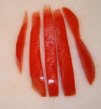 To dice the tomato place the petals flat on your work surface. Flatten it slightly, if needed.
