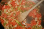 Heat the olive oil over medium heat in a large skillet, add the onion, celery, bell pepper, carrot, and garlic.  Cook, stirring freqently until tender.  Add the tomatoes, tomato paste, cider vinegar, kidney beans, and chili powder.  Bring to a simmer, if desired sprinkle in the corn starch, stirring thoroughly.  Simmer for five minutes and serve.