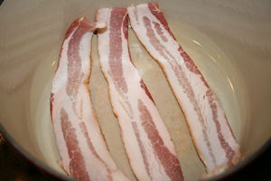 - 3 uncooked slices of bacon (use 4 if they are thin slices)