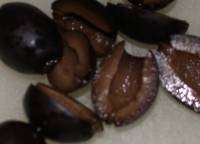 Slice olives in half lengthwise. As you do this, look for any fragments of olive pits which may have been left behind by the mechanical olive pitting equipment. Usually, you won’t find any, but this time I found two!