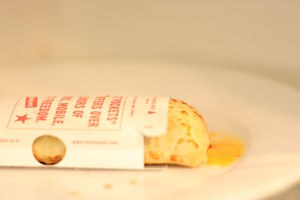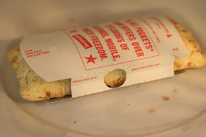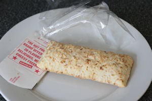 Remove the wrapped breakfast pastry.