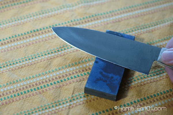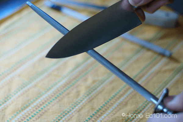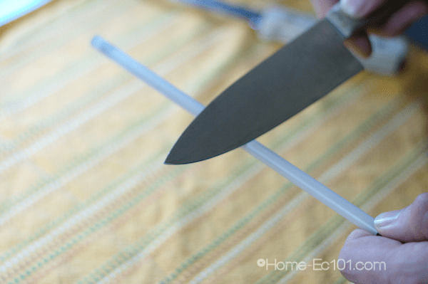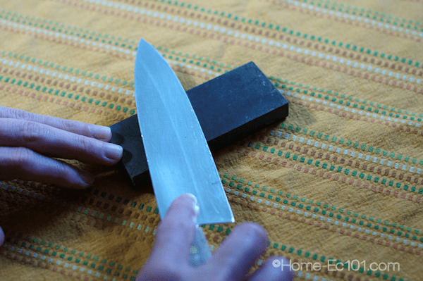Without any more procrastination or delay here is the Home-Ec101.com Knife Sharpening Tutorial. I talk about knife skills and the importance and safety of having sharp knives, but how do you get and keep your knives sharp?